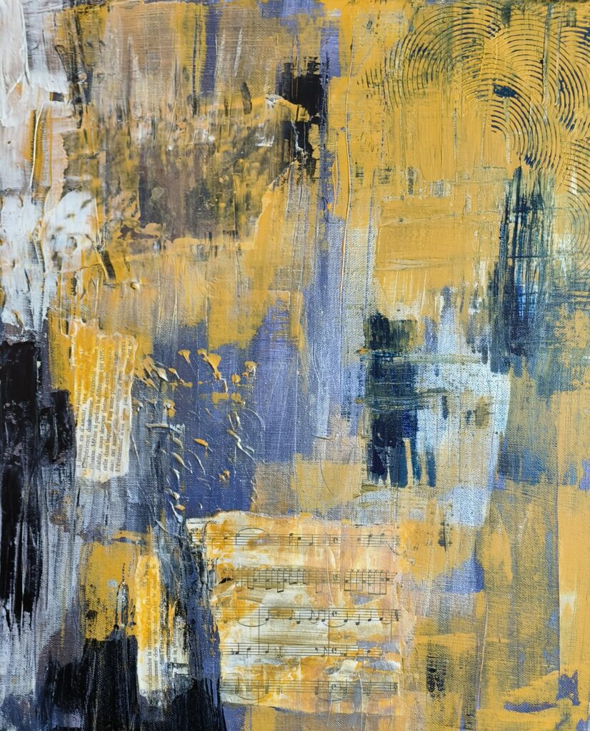 Collage et acrylique sur toile 38cm X 46cm Mai 2023
