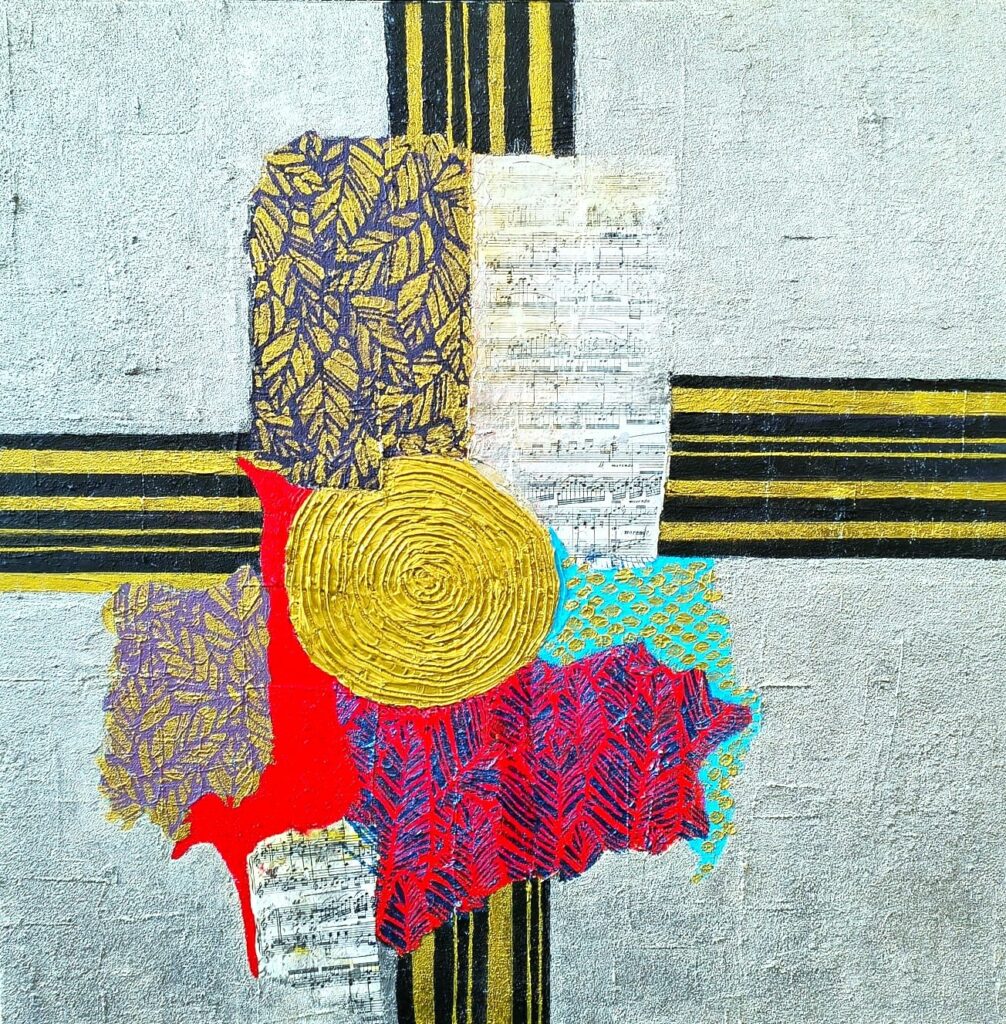 Collage et acrylique sur toile 50cm X 50cm Mai 2024