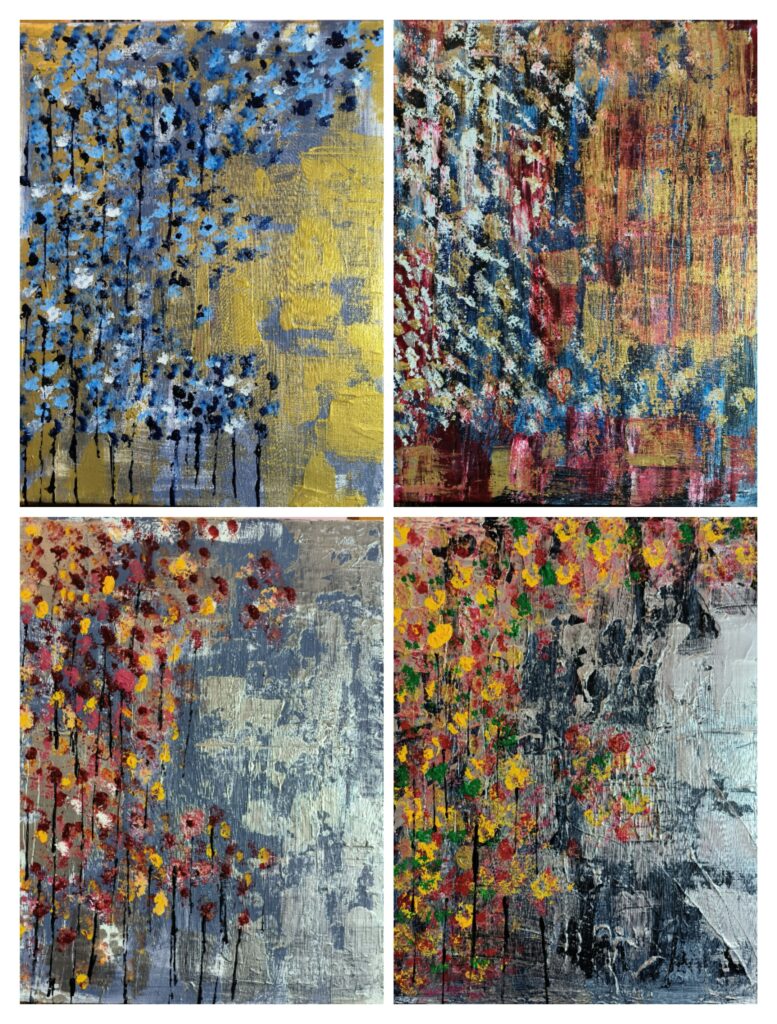 Nature, UncategorizedFleurs coupées en 4 ! admin9345 / Acrylique sur toiles 4 toiles 27cm X 35cm Juin 2023
